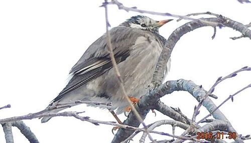 ~今日は鳥さん~ 近所の道を歩いている時に見かけたムクドリ(椋鳥)さんです。 ムクドリさんは、黒っぽい体で顔に白いモヨウ(模様)があり、足とクチバシが黄色?オレンジ色?をしているのが特徴との事です。 寒い中でも、たくましいムクドリさん。 (写真上…